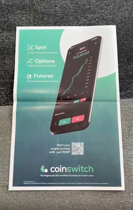 Working closely with the CoinSwitch team, The Media Ant designed the execution to ensure the medium amplified the message rather than merely carrying it. The use of a high engagement print innovation helped CoinSwitch connect meaningfully with Gujarat’s audience while strengthening recall and consideration.