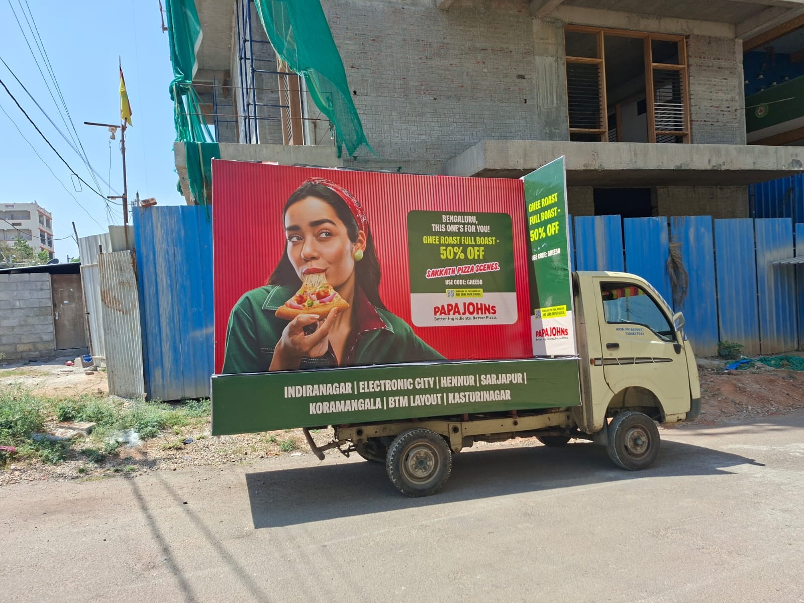 Papa John’s partnered with The Media Ant to execute a targeted BTL marketing campaign aimed at strengthening brand awareness and driving store footfall following its reentry into the Indian market. The campaign was rolled out across Bengaluru, focusing on three key store locations Sarjapur, Hennur and Koramangala, with the objective of building strong local visibility and encouraging nearby consumers to visit the outlets.