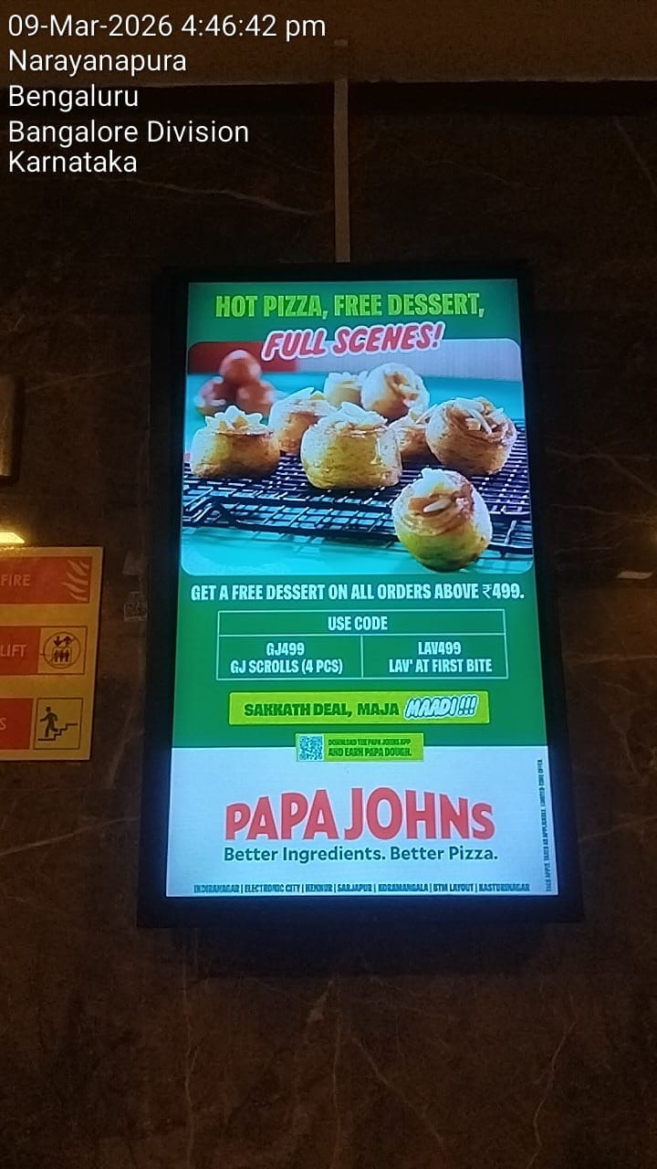 Papa John’s partnered with The Media Ant to execute a targeted BTL marketing campaign aimed at strengthening brand awareness and driving store footfall following its reentry into the Indian market. The campaign was rolled out across Bengaluru, focusing on three key store locations Sarjapur, Hennur and Koramangala, with the objective of building strong local visibility and encouraging nearby consumers to visit the outlets.